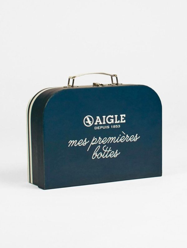 Une valisette en carton contenant des coloriages, pouvant recevoir une paire de bottes Baby Flac, pour le plus grand bonheur des tout petits et de leurs parents.