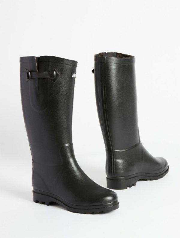 Volée au vestiaire des homme, la botte de pluie Aiglentine affirme son caractère avec sa patte de serrage et sa semelle crantée. Sa coupe cavalière et sa forme galbée lui confèrent une allure féminine. Fabriquée à la main en France. Tige souple et confortable