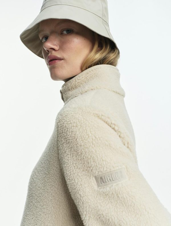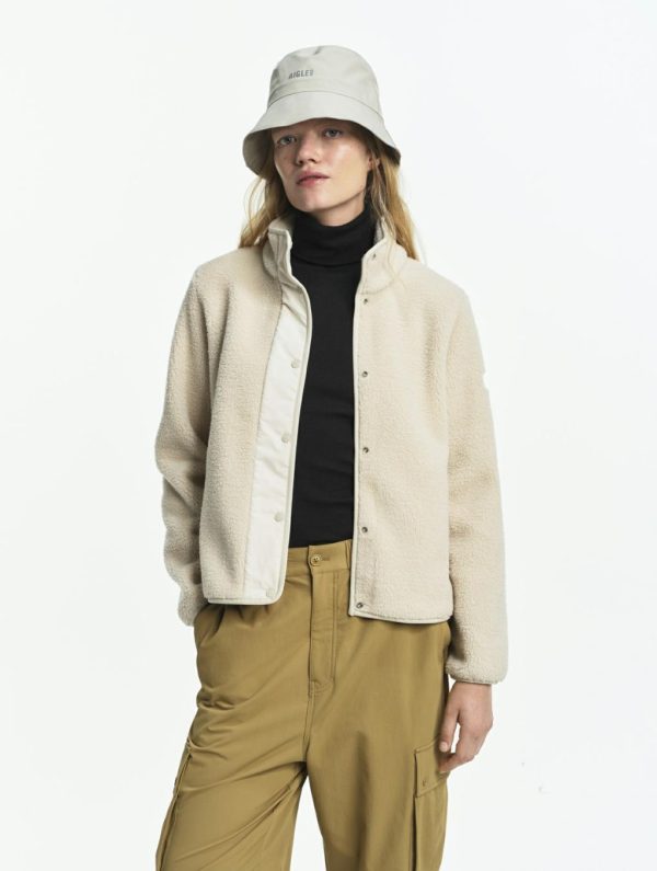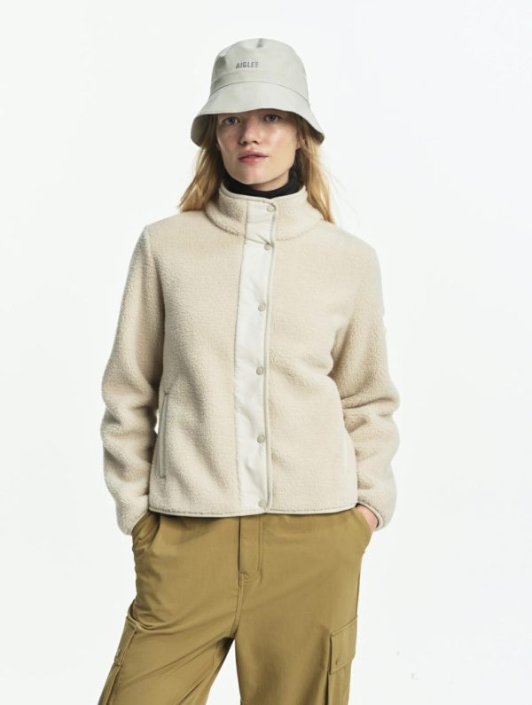 Le blouson bi-matière en sherpa à col montant, un incontournable de la saison, se décline dans de jolies couleurs hivernales. Col montant