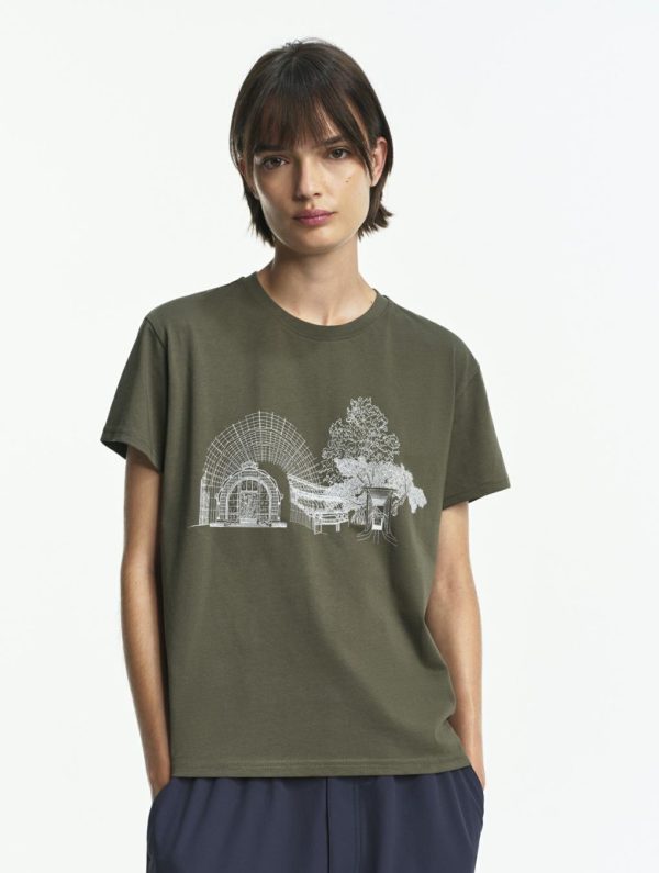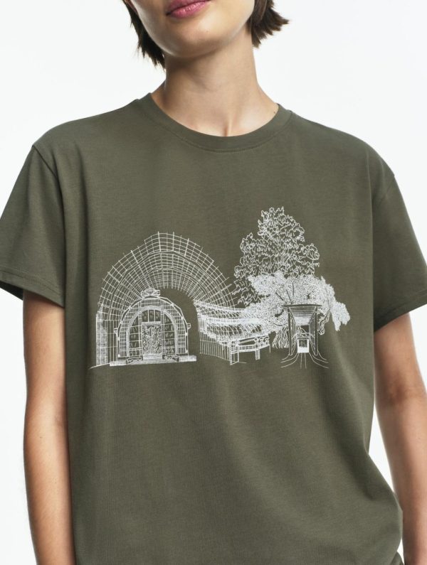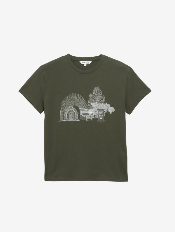 Aigle x Muséum d’Histoire Naturelle : t-shirt col rond en jersey de coton bio, chic et pratique. Il illustre la nature en ville avec un imprimé noir et blanc façon encre de plume, hommage au célèbre Jardin des Plantes de Paris. Coupe droite