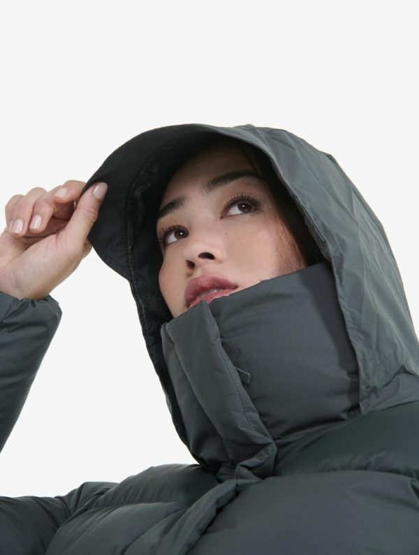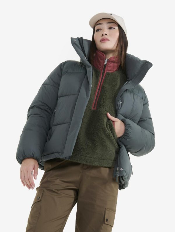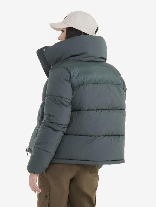 Cette doudoune courte en garnissage recyclé à col montant joue les contrastes matières avec son empiècement haut satiné et sa partie basse mate. Capuche escamotable dans le col et ajustable par cordon et serre-cordons